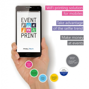 Event Print is a newly-designed printing solution for smartphones and tablets. It comes with ready to use business models and allows you to immediately offer new services and get additional income from events.